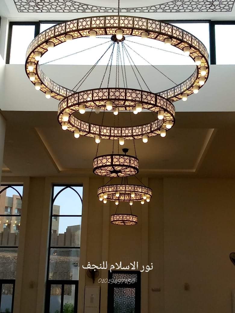 At Noor Al-Islam Chandelier Factory, we keep pace with architectural developments in mosque design and lighting by offering modern Islamic chandeliers that utilize laser cutting technology to ensure the highest level of precision, beauty, and geometric harmony.